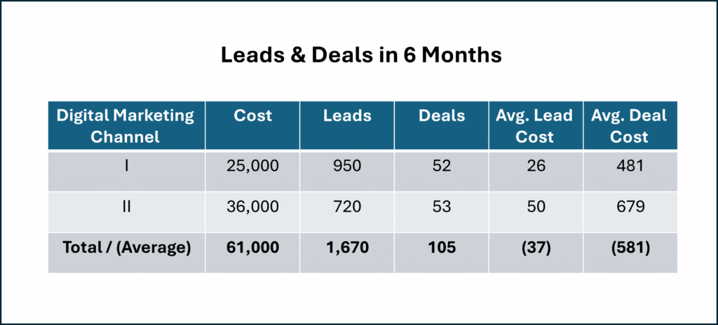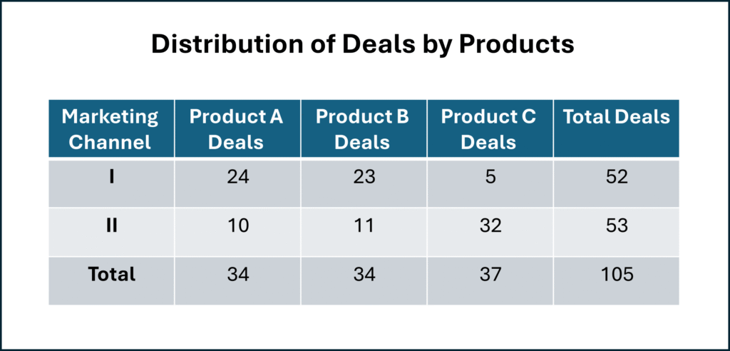 He discovered that the distribution of deals by products was completely different in the two marketing channels: